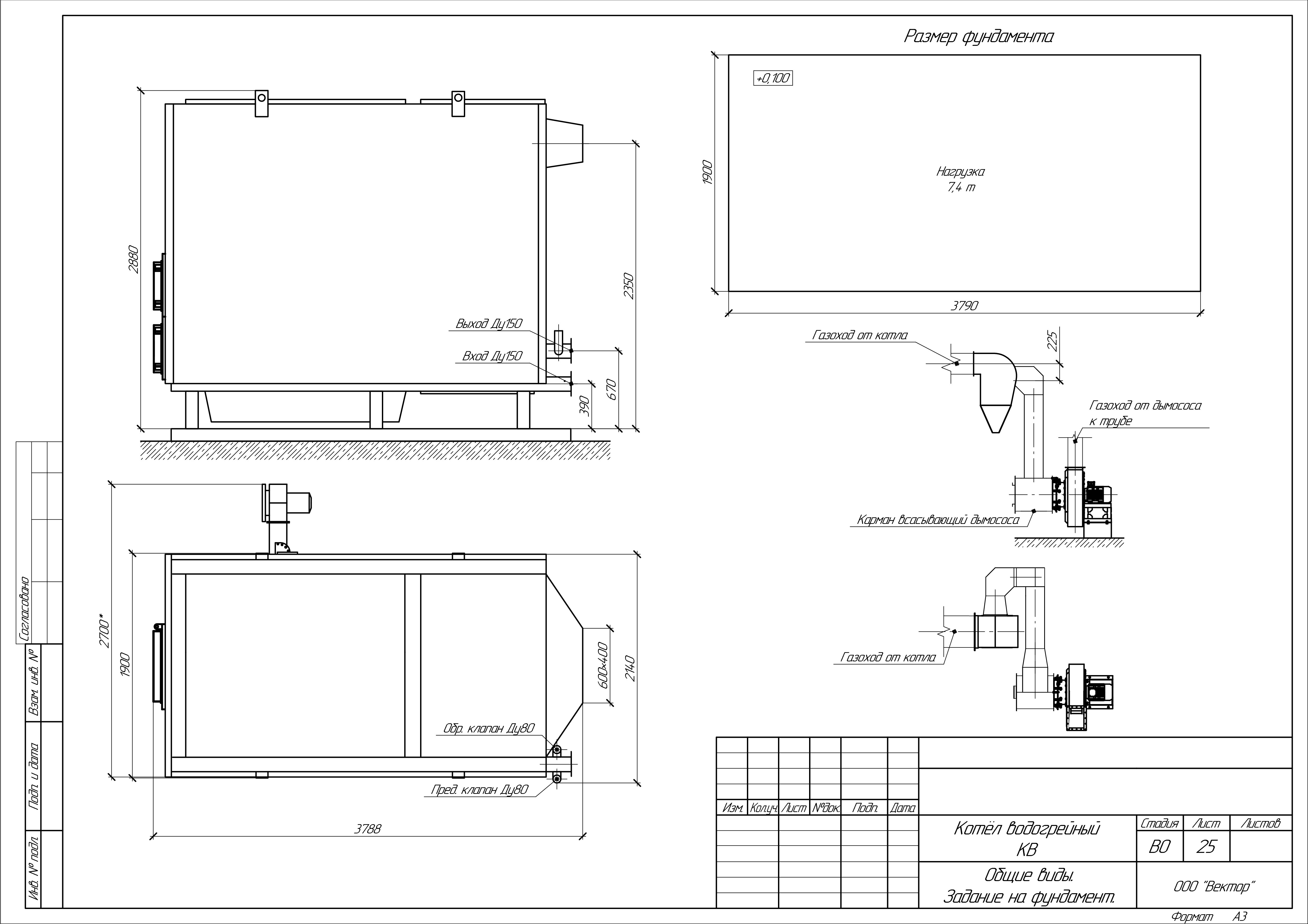 Водогрейный котел КВм-4.0 на древесных отходах со шнековой подачей, где: